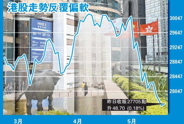 美國暫緩對華為封殺,市場緊張情緒紓緩,帶動三大指數由低位反彈。美元高位靠穩,美國10年期債息進一步回升,油價略為偏軟。內地股市低位略為反彈,但滬深兩市成交額下跌,外資繼續大規模撤出,顯示投資情緒仍然審慎。港股走勢反覆偏軟,預料市場繼續觀望中美貿易戰發展,指數反彈空間有限,28000點附近為主要阻力,後市有機會下試27200點支持位。