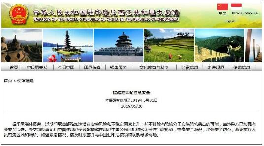 事实上,早在20日,中国驻印尼使馆就在官网发布公告,提醒在印尼中国公民和机构注意安全,具体内容如下: