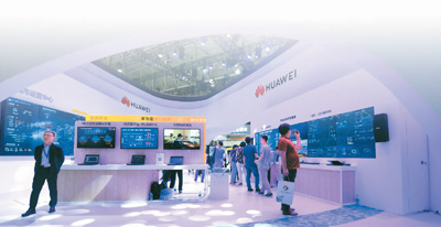观众在天津第三届世界智能大会智能科技展上的华为展台参观。新华社记者 岳月伟摄