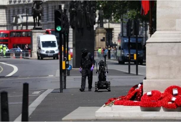伦敦警察厅警方在推特上写道:“在对可疑物品进行检查期间,白厅周围的道路暂时关闭。警方于23日12点到场。专业人员也在现场。”