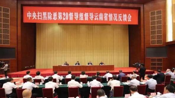 根据全国扫黑除恶专项斗争领导小组的部署,5月24日,中央扫黑除恶第20督导组组长韩勇向云南省反馈督导情况。云南省委书记陈豪就做好督导整改工作作表态讲话,中央扫黑除恶第20督导组副组长张力出席会议,省长阮成发主持会议。