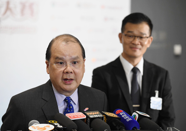 張建宗昨出席公開活動後回應修訂《逃犯條例》表示,港府會繼續與不同界別團體磋商,全力破解疑惑。記者崔俊良攝