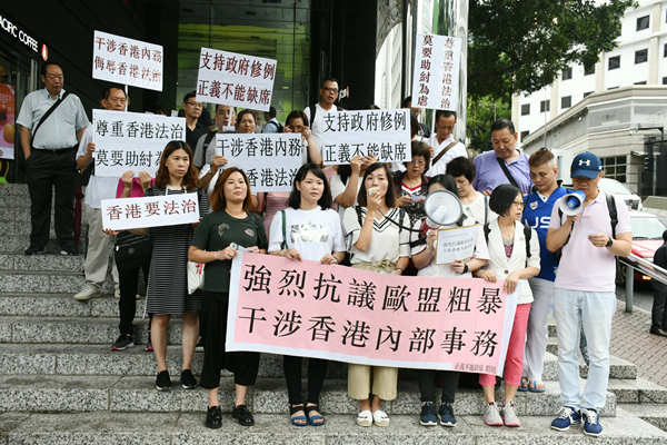 「正義不能缺席」成員抗議歐盟粗暴干涉香港內部事務。記者馮瀚文攝