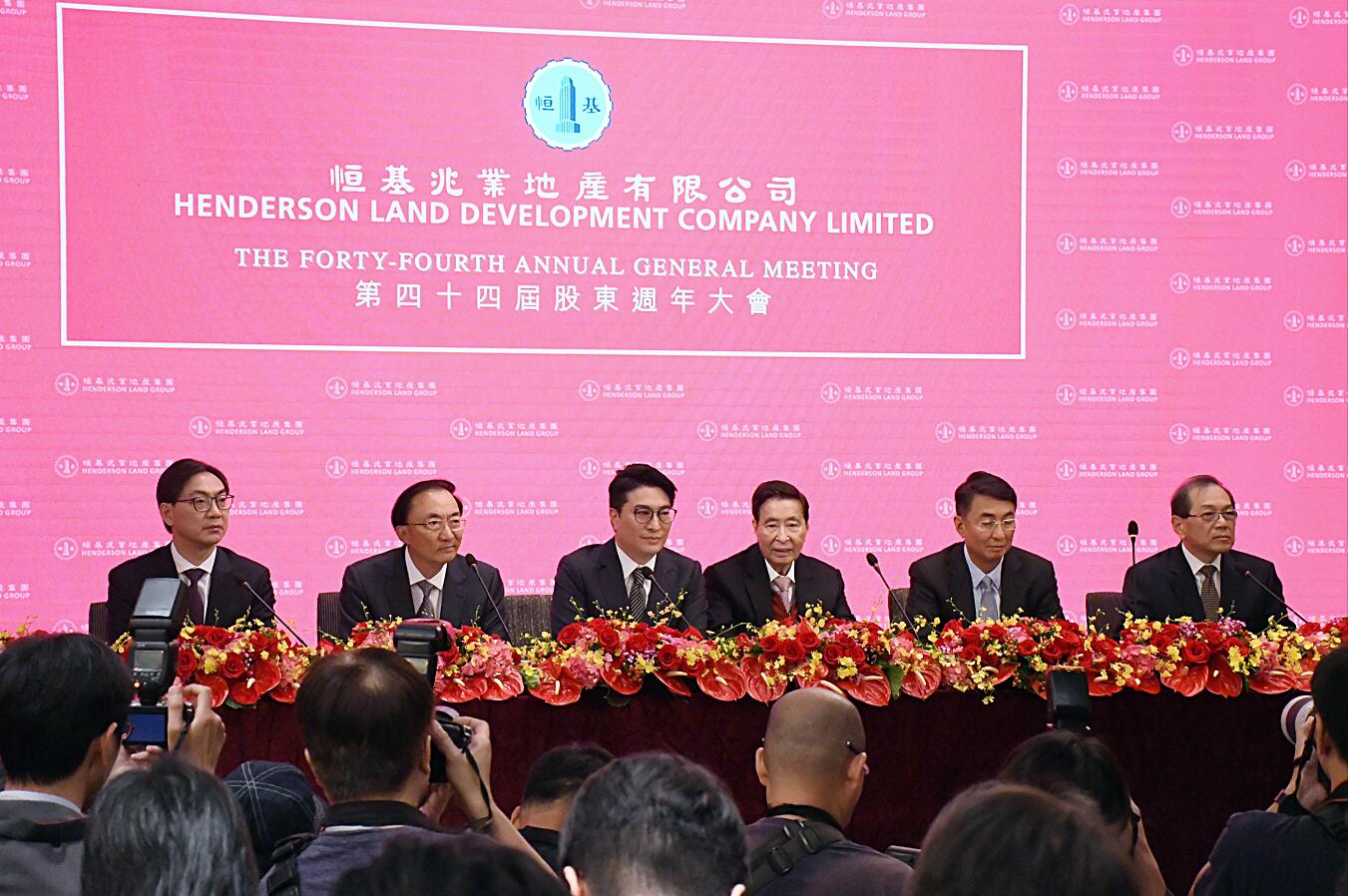 【香港商報网訊】恒基系包括恒發(097)及恒地(012)今日舉行股東會,是四叔李兆基最後一次以主席身份主持會議,場內不住播放「祝福」等離別歌曲。股東會後,李兆基、李家傑及李家誠等管理層見傳媒,當中主要由四叔兩名兒子回答提問。而今次股東會亦標誌李家傑及李家誠正式接棒。