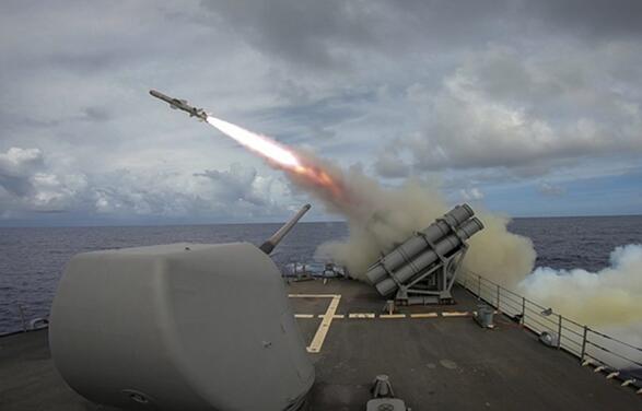 发射中的美国“鱼叉”反舰导弹