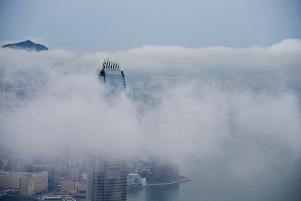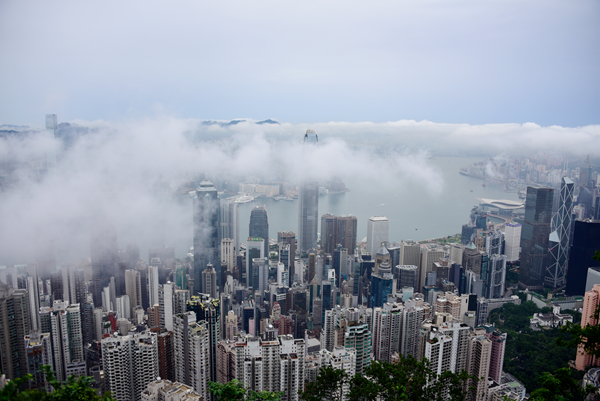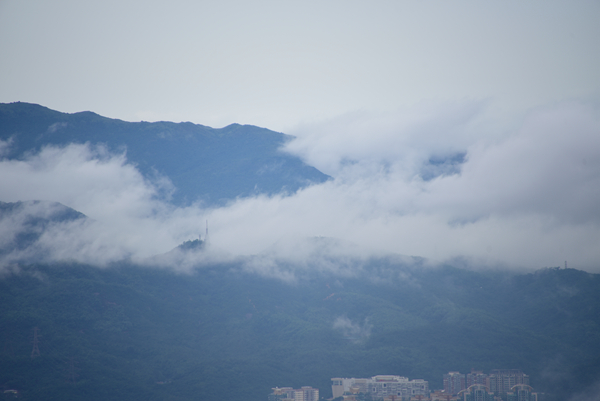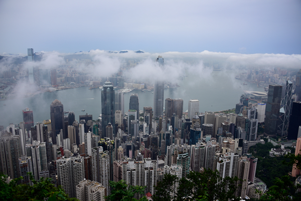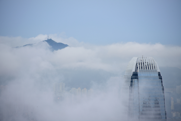 本港今早曾受大雨影響,天文台一度發出黃色暴雨警告,至中午前雨勢減弱。雨過後,天亦清,不過濕度仍高,因此天上仍有大量雲朵。因為氣象條件許可,雲朵一直處於較低高度,形成雲繞香江的美景。記者梁希賢攝