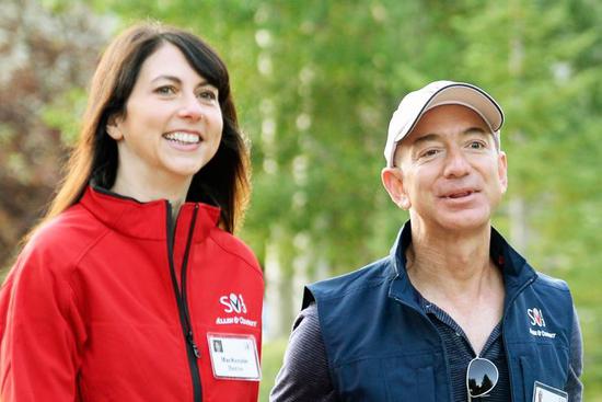 图:亚马逊创始人兼首席执行官杰夫·贝索斯(Jeff Bezos)与前妻麦肯齐(MacKenzie)