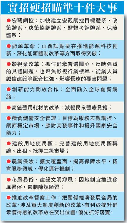 會議強調,要堅持通過深化改革來破難題、解新題,加快改革創新,推動任務落實,強化制度集成,增強經濟發展內生動力,增強應對挑戰、抵禦風險能力。要加強對改革的實效評估,梳理存在的突出短板和弱項,有針對性地一項一項推動解決。改革工作中要統籌全局、整體推進,結合實際、突出重點,衡量改革的有效性要從國家改革發展全局出發,既看單項改革執行落實情況,也從戰略層面統籌考慮相關制度的集成效果。要把關係經濟發展全局的改革、涉及重大制度創新的改革、有利於提升群眾獲得感的改革放在突出位置,優先抓好落實。一些重大試點任務,要抓緊時間,倒排工期,早出成果。