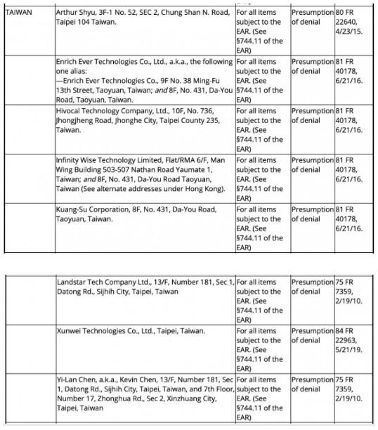 5月27日,岛内亲绿媒体“自由时报”报道称,华为在台代理商讯崴科技,也被列入了“实体清单”范畴中。同时,该报“查看”后发现,还有另外7家台湾公司因“违反美国对伊朗禁运令”而遭列入清单。