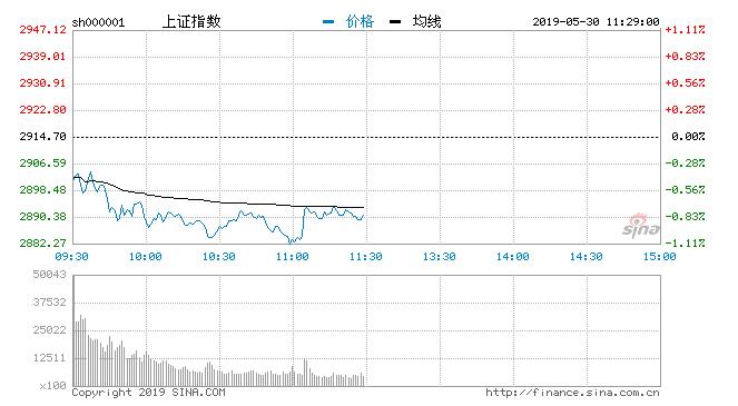 新浪财经讯 5月30日消息,今日开盘两市小幅低开,早盘采掘服务、农业种植、养殖业板块虽强势拉升,但受国产软件板块持续杀跌影响,各大股指呈现震荡下行走势,沪指失守2900点关口,一度大跌逾1%,临近上午收盘,券商、雄安新区板块虽有异动拉升,但是依旧不改市场低迷格局,整体上两市股指均维持低位震荡,个股跌多涨少,资金观望情绪浓厚,截止午间收盘,沪指报2890.58点,跌0.83%,深成指报8896.27点,跌1.27%,创指报1477.97点,跌1.33%。