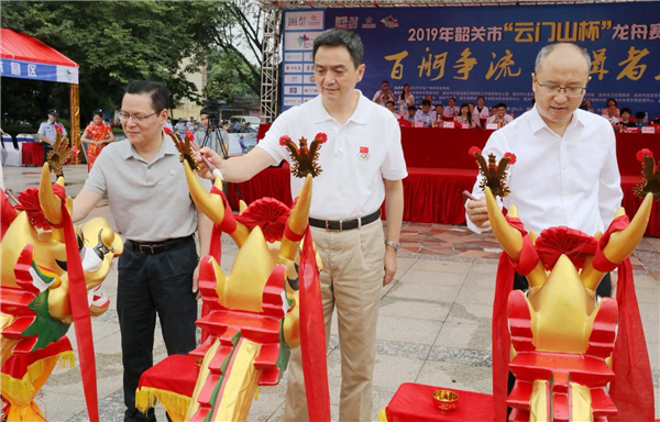 韶關市委書記李紅軍等市領導為即將下水的龍舟點睛