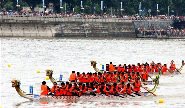 上午9點30分,隨着號令槍響,一艘艘龍舟猶如穿雲破霧之蛟龍,隨着船員們齊刷刷地用力揮槳的節拍破浪前行,船身下方飛濺出的浪花像白色綢緞,點綴江面,煞是好看。