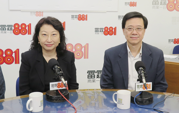 鄭若驊(左)及李家超(右)昨出席商台節目,繼續為修訂逃犯例向市民解說。