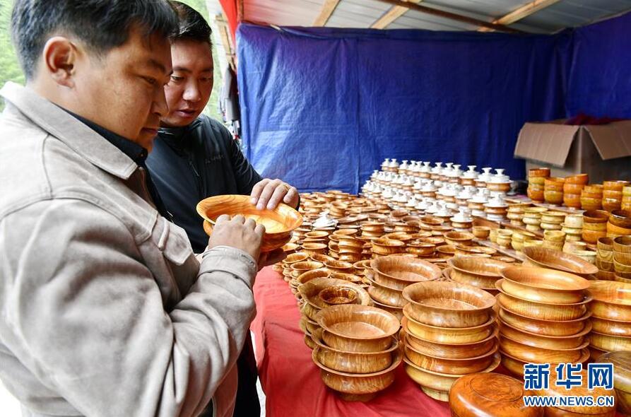 6月2日,顾客在亚东首届国际边贸旅游文化节上挑选普兰木碗。新华社记者 张汝锋 摄
