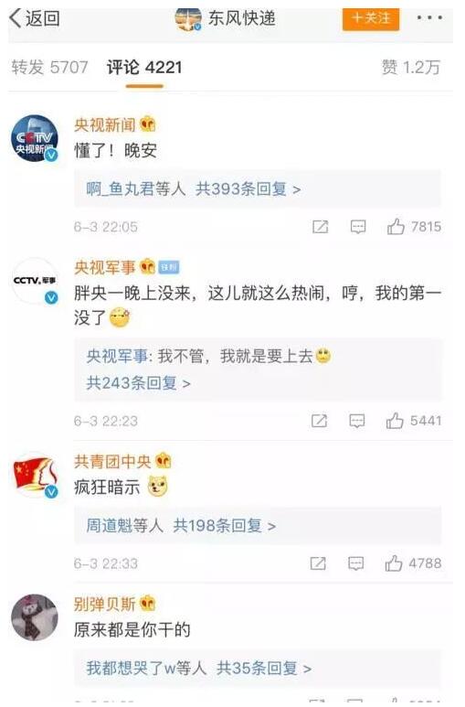 就在这些天,出现在中国多个省份上空的神秘天象引发广大网友好奇热议的时候,火箭军官方账号@东风快递 发布了一条微博,正当广大网友还在猜测的时候,中国海军官方账号@人民海军 也加入互动,发布了一条微博呼应……