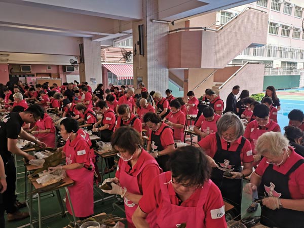 【香港商報網訊】記者呂明霞報道:陽光天使義工團日前假港九潮州公會中學舉辦「2019端午節給長者舌尖上的幸福活動」,來自幸福村、鳳凰新村、美孚曼克頓之友社3個社區的120位長者歡聚一堂,齊包糉子,並創下世界紀錄協會「世界上最多長者同時製作港式糉子」的世界紀錄。