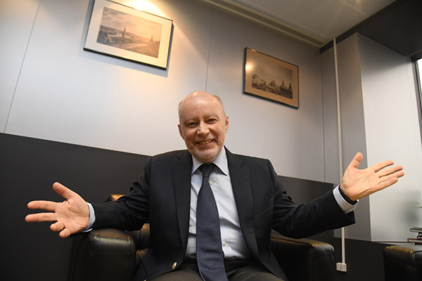 俄羅斯駐港總領事科茲洛夫接受本報專訪時表示,香港可更主動在「一帶一路」及大灣區建設中發揮 「超級聯繫人」 的作用。 記者 崔俊良攝