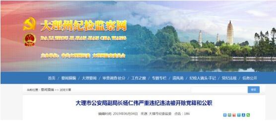 大理市公安局副局长杨仁伟严重违纪违法被开除党籍和公职
