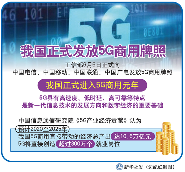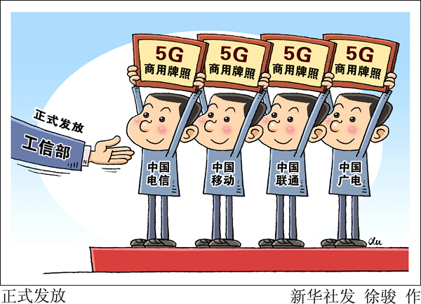 中國6日發放了4個5G牌照。獲得5G牌照的中國3家基礎電信運營商當日披露了5G發展規劃,均表示今年實現40城市5G覆蓋,並推動終端價格不斷下降。