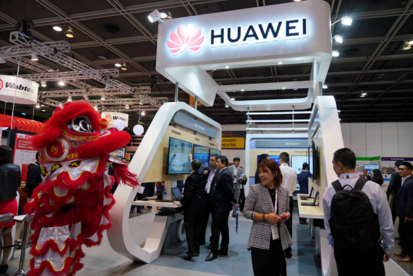 華為表示,目前已獲得了46個5G 億元翻了一番。商用合同,將全力支持中國運營商建好5G。圖為華為參加香港展覽資料照片。中通社