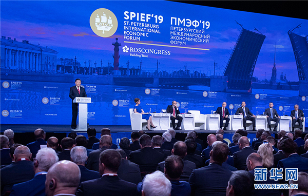 【香港商報网訊】當地時間7日,國家主席習近平出席聖彼得堡國際經濟論壇全體會議並發表演講。他表示,當前人類再次站在了歷史的十字路口,可持續發展是破解當前全球性問題的「金鑰匙」,同「構建人類命運共同體」目標相近、理念相通,都將造福全人類,惠及全世界。習近平指出,中國願同各國分享包括5G技術在內的最新科研成果,共同培育新的核心競爭力,轉變經濟增長模式。