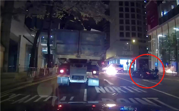 男子打開黑色私家車車門上車,迅即開車逃去無蹤。