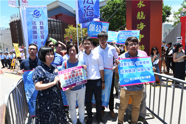 保公義撐修例大聯盟及民建聯屯門團隊趁行政長官林鄭月娥出席屯門龍舟競渡時,到場向她請願要求盡快通過修訂《逃犯條例》。記者崔俊良攝