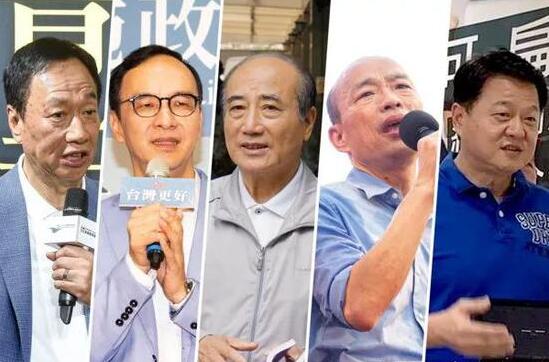 从左至右依次是:郭台铭、朱立伦、王金平、韩国瑜、周锡玮。(图片来自:台湾“东森新闻云”)