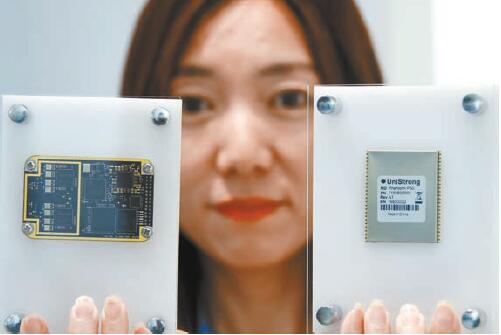 全球首顆全面支持北斗三號民用導航信號體制的高精度基帶芯片「天琴二代」在京發布,該芯片將助推北斗三號的產業化應用與落地。中新社
