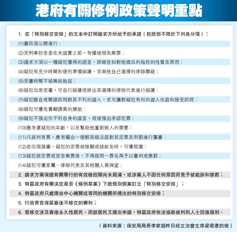 林鄭再次聲明,修訂《逃犯條例》及《刑事事宜相互法律協助條例》的目的正正是完善香港的法制,彰顯公義,確保香港不會成為一個犯罪者逃避刑責的地方。大家試想想,本港現時只是與20個地區簽訂了逃犯移交協定,只要有一些罪行發生在其他地方,而犯罪者逃離該地來到香港,完全沒有可行的法律基礎來處理,可以說香港與鄰近地區,包括內地、澳門和臺灣,不單沒有任何法律基礎可以進行逃犯移交,亦不能夠在刑事方面進行一些互助。這個事實上是制度上的一大缺陷,特區政府不可以視而不見。