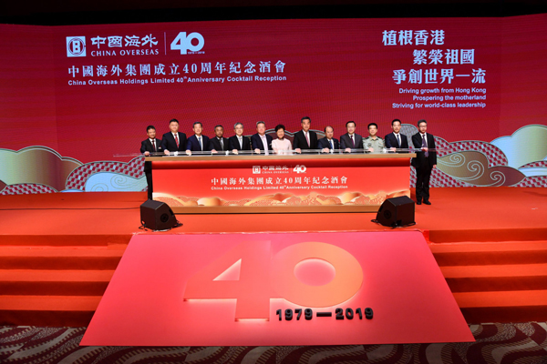 梁振英回憶說:「40年前,我和其他專業人士有機會參與了公司籌建的部分工作。很高興看到中國海外落地生根,茁壯成長,成為香港建築界的主力。」顏建國致辭時表示:「1979年改革開放,中國海外在香港創立,我們有幸見證並參與了香港作為『亞洲四小龍』的經濟騰飛;1984年香港前途明朗,是我們進一步植根香港的歷史前提;1997年香港回歸祖國懷抱,我們亦打開了業務發展藍圖,馳騁在港澳與內地兩個市場,中國海外迅速壯大成為香港最大承建商並成為中國房地產行業龍頭企業,並拓展國際市場。」