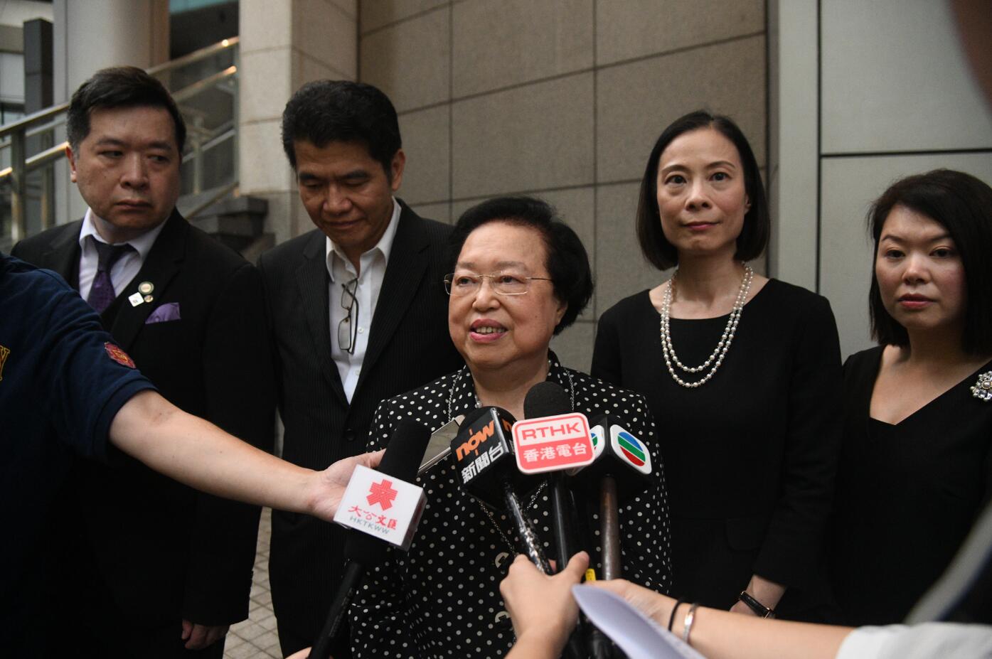 香港中律到警總捐助30萬港元予警察福利基金及 慰問在日前暴力衝突中受傷的警員,譚惠珠(右二) 接受傳媒訪問。 記者 蔡啟文攝