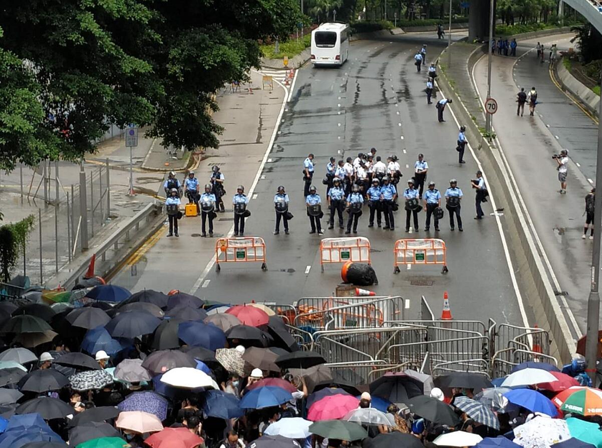 大樓內,警方在立法會道方向的議員入口部署了較重型裝備的額外警力,應付突發事件。由於示威者不時發出叫囂及向警方投擲雜物,令大樓氣氛持續緊張。接近下午3時,暴徒開始發難,衝擊立法會示威區,及不斷投擲雜物,以圖闖入立法會,警員見狀以胡椒噴霧及催淚劑等,抑制暴徒前行。