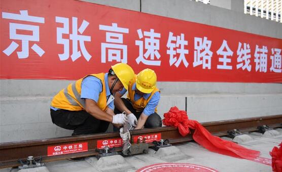 12日上午,京张高铁最后一根钢轨在中铁三局WZ-500型无砟轨道铺轨机牵引下准确落在清华园隧道的枕木上,精调之后,轨距误差在正负1毫米之内。被誉为中国铁路发展“集大成者”、智能高铁示范工程的京张高铁实现全线轨道贯通。