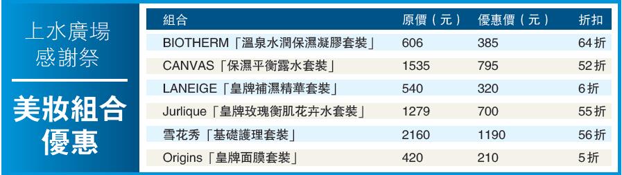 上水廣場購物感謝祭至本周日,場內大量美妝組合及美鑽首飾等貨品以優惠價發售。