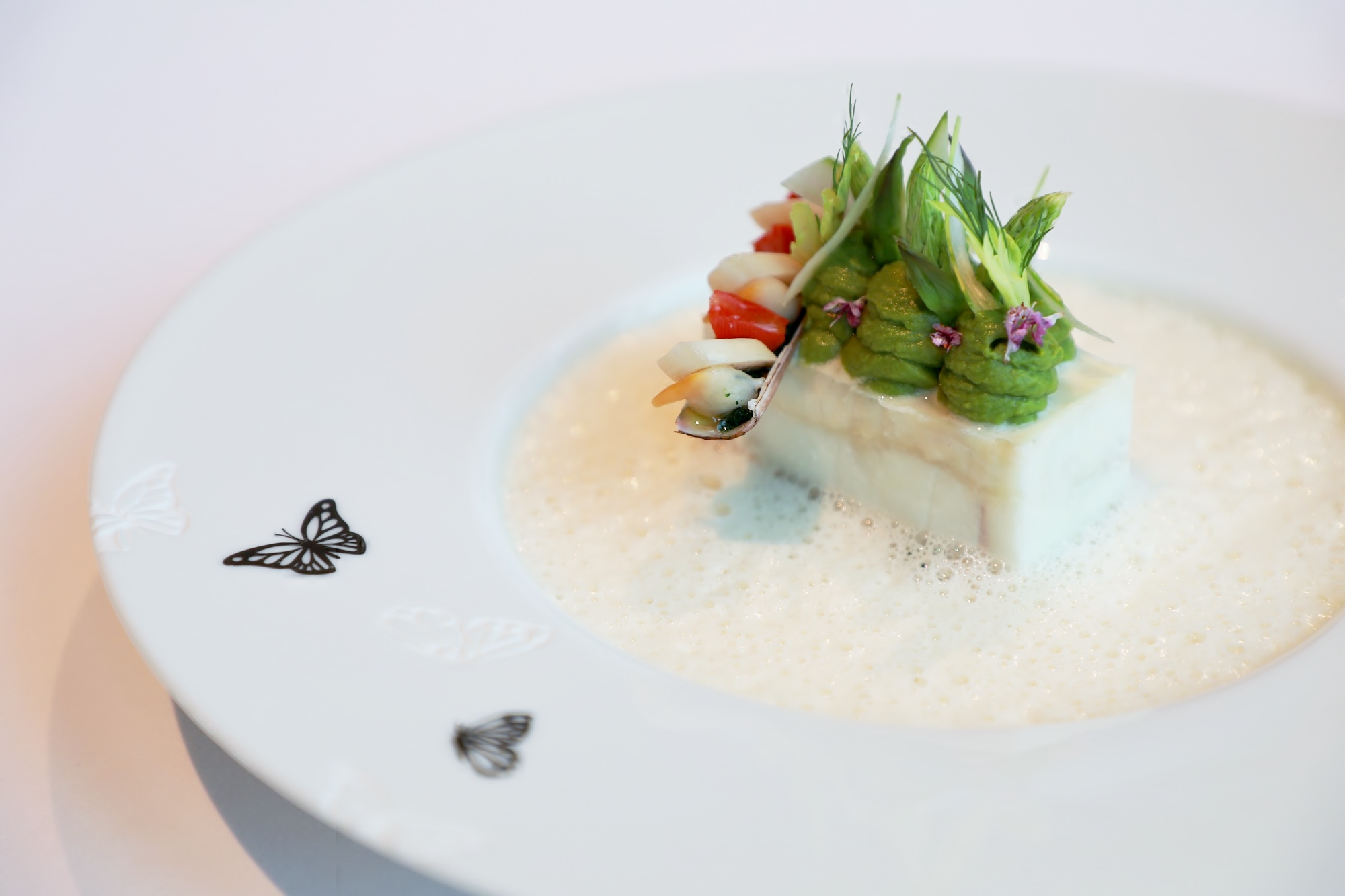 餐廳除了美食吸引人,連帶裝食物的盤子也是值得細賞的藝術品,錯落有致飛舞的蝴蝶,和餐廳中一幅大大的裝飾蝴蝶牆相呼應,一問之下才知道是Chef Vulin特別帶來餐廳的:「我出生的地方,那裏有很多很多的蝴蝶,而我就像這些蝴蝶一樣,在世界不同的地方,收集最好的食材,烹調出最好的作品,呈獻給我們的客人。」筆者最後問他可有信心再下一城為餐廳摘下三星,他笑言:「老實說心裏肯定想要,我在很年輕的時候就已經開始在著名的餐廳、跟着名廚學習,這些人將發展廚師事業視為永不停止的工作,我也想和他們一樣走得更高,但這個過程我們更看重食客的享受,會跟我的團隊保持最高水準呈獻給客人。」