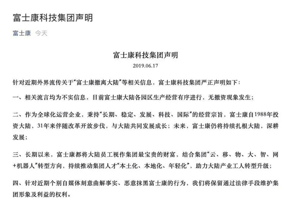 富士康聲明