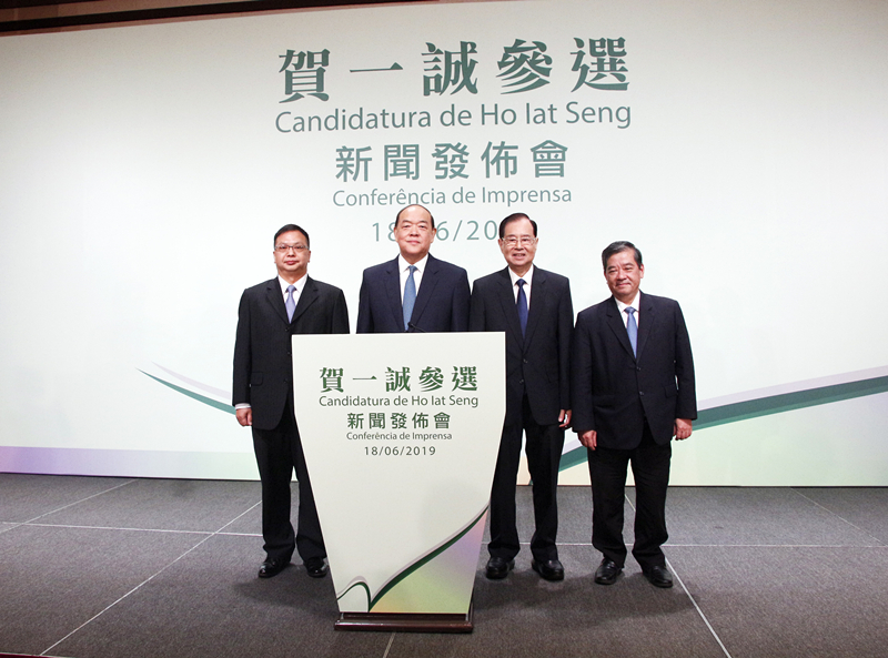 賀一誠正式宣布參選澳門特區第五任行政長官。圖為賀一誠(左二)及其參選團隊。