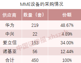 中国移动这份核心网5G大单,华为的中标数量最多。在MME设备招标上,华为、中兴、爱立信和诺基亚的中标数量分别为219、22、153和56套;在SAE-GW设备上,华为、中兴、爱立信和诺基亚的中标数量分别为369、21、231和60套。
