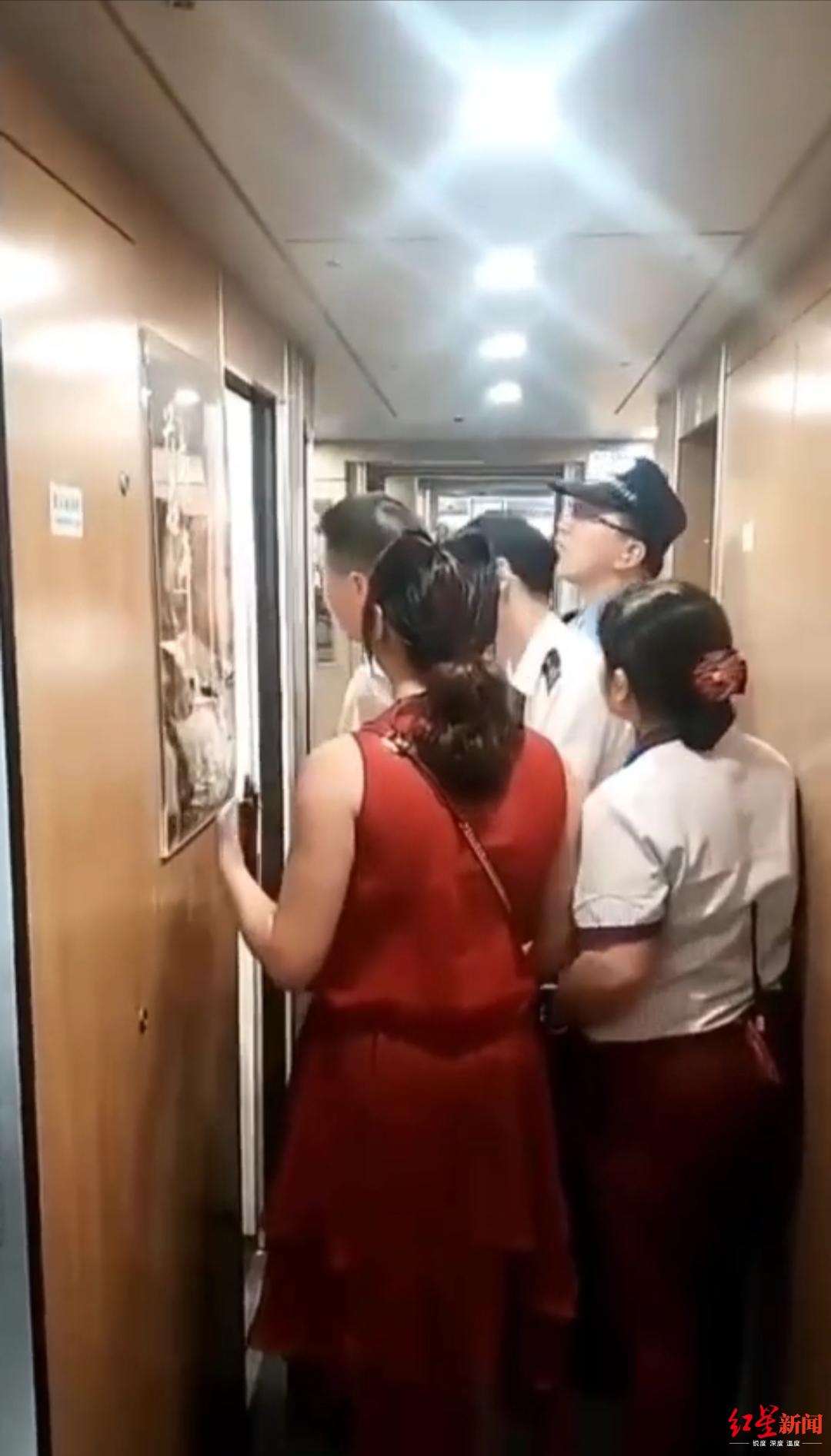 從現場視頻中,紅星新聞記者看到,一名紅衣女子自稱系女孩姐姐,面對妹妹行為稱妹妹還未成年。對此,列車工作人員現場查看了當事人車票,並提出了嚴厲批評。