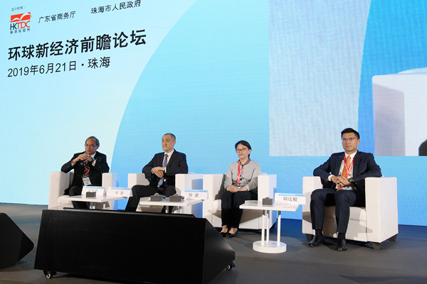 本次論壇由香港貿發局與廣東省商務廳合辦,珠海市人民政府擔任支持機構,分為「新經濟破局,賦能大灣區」及「新經濟與初創培育:未來獨角獸」兩個環節。在首環節中,香港貿發局研究總監關家明擔任主持,與微軟公司中國首席技術官韋青、香港科技園公司首席商務總監徐建,及香港創業及私募投資協會創投委員會主席、香港信息科技聯會會長、慧科資本董事總經理邱達根對談,分享人工智能、物聯網等新科技、新產業,以及探討大灣區企業如何與香港企業合作,開拓創新科技領域的商機。