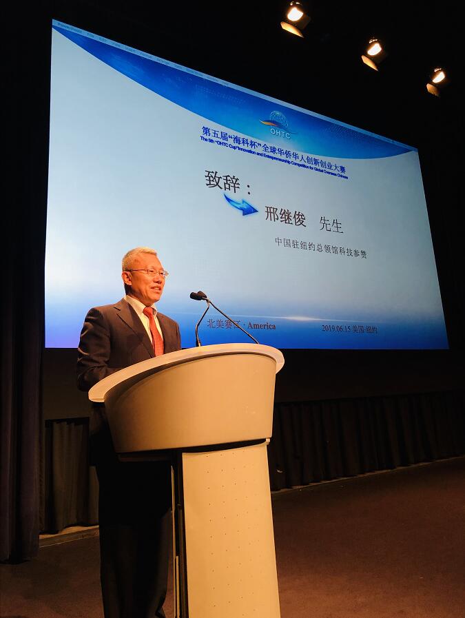 中國駐紐約總領事館科技參贊邢繼俊代表中國駐紐約總領事館和黃屏總領事對本次大賽的舉行表示熱烈祝賀,他肯定了四川改革開放四十年來在技術進步和科技創新方面取得的重要成就,就目前中美貿易摩擦給留學人員等中美正常交流造成的影響進行了解答,他強調在特殊時期留學生和科研人員要更加註重合法合規的進行科技交流與合作。