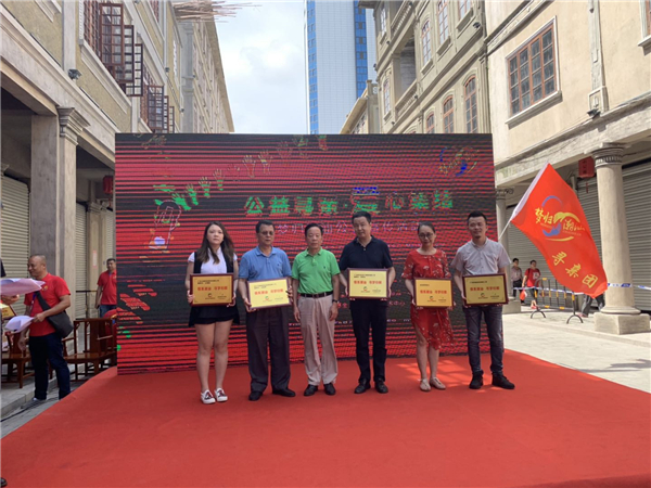汕頭市公益基金會會長張澤華向熱心企業頒發牌匾。