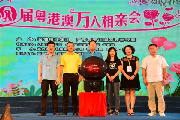 當日,1300多名單身男女冒著炎炎夏日走進相親會現場,積極爭取自己的終身幸福。據介紹,本屆粵港澳萬人相親會由深圳報業集團聯合廣東觀音山國家森林公園舉辦,心連心婚戀網、金鳳凰(深港)征婚網特約主辦,真約網、家和姻緣服務公司、香港商報、保愛網、百合網·東莞共同承辦,該活動以精彩紛呈的互動環節、走心的氛圍布置、暖心的結緣夫妻現場“婚禮”等亮點頗受好評,最終促成112對男女浪漫牽手。本報副總編輯楊沐浴陽,廣東分社社長帥俊出席並宣布開幕。