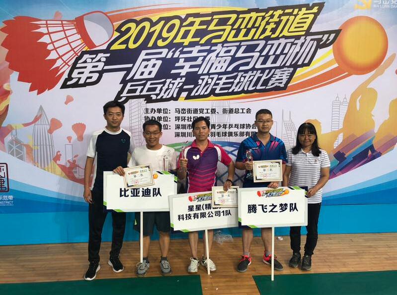 據了解,經過初賽、決賽的激烈角逐,比賽決出了乒乓球團體賽前8名,羽毛球團體賽前8名。乒乓球賽星星科技隊獲得冠軍,比亞迪隊獲得亞軍,騰飛之夢隊獲得季軍;羽毛球賽比亞迪二隊獲得冠軍,伊諾隊獲得亞軍,樂安居隊獲得季軍。