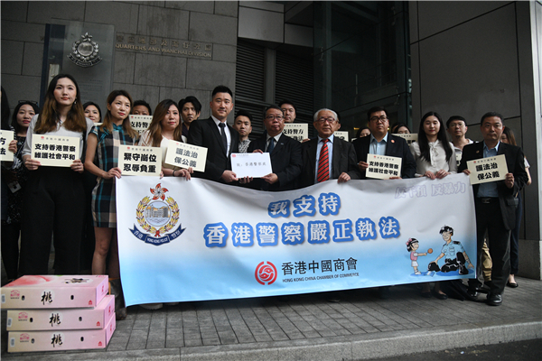 香港中國商會、香港廣西社團總會、香港佛山社團總會等都分別到灣仔警總向警方致敬,並送上飲品,希望警員於炎炎夏日不要中暑,繼續努力謹守崗位,為香港維持應有的秩序,做好執法工作。