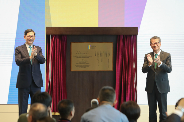 陳茂波(右)與金融管理局總裁兼金融學院主席陳德霖主持金融學院成立典禮。香港政府新闻网