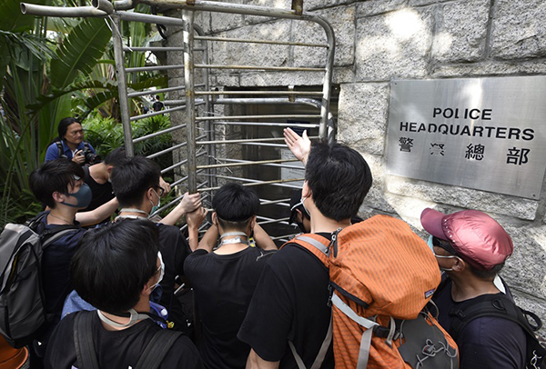 上周五,發生包圍和衝擊警總等政府機構的嚴重事件,造成特區政府多個部門幾乎停止運作。當天下午,大批著黑衣戴口罩的示威者,在黃之鋒等人帶領下又公然包圍警察總部,用鐵馬將各個出入口堵住,不讓警員和警車出入。包圍和衝擊長達16個小時,致使樓內被困的13名孕婦和患病老人不能及時送醫救治,46宗999報警求助電話無法受理,千多名警務人員被圍困在大樓內,警署功能陷於癱瘓。