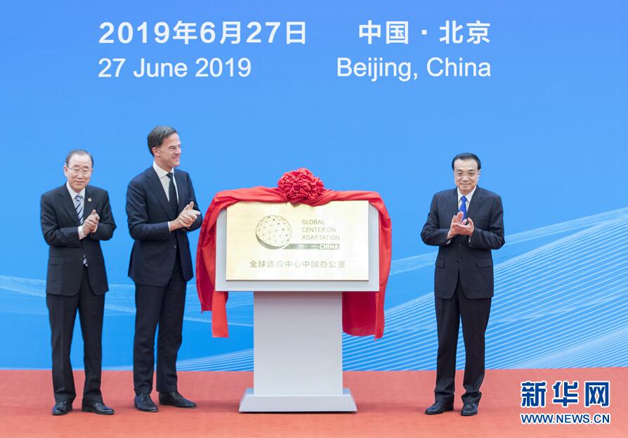 新华社北京6月28日电(记者郑明达)国务院总理李克强27日晚在人民大会堂同荷兰首相吕特、联合国前秘书长潘基文共同出席全球适应中心中国办公室揭牌仪式。