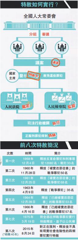 人大常委會法制工作委員會負責人當日表示,這是新中國成立後第九次特赦。今年是新中國成立70周年,是新時代第一個逢十的周年,是「兩個一百年」奮鬥目標進入歷史交匯期的關鍵之年,是實現中華民族偉大復興歷史進程中的第二個重要節點。在這一重要歷史時刻,對部分罪犯實行特赦具有重大意義。